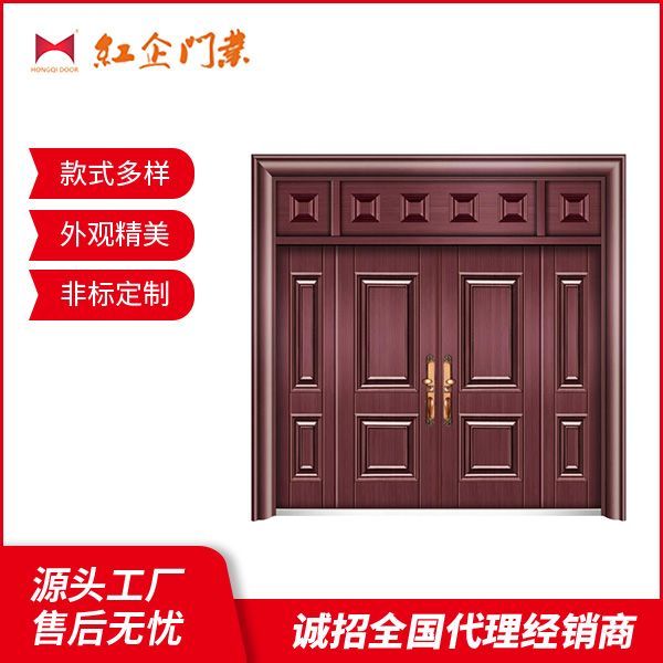 紅企門業一直堅持“信譽為本,客戶為先”的經營理念和生產理念,先后自主研發生產了具有不同風格的中高規格鋼板大門、非標實體門、環保型室內門等。